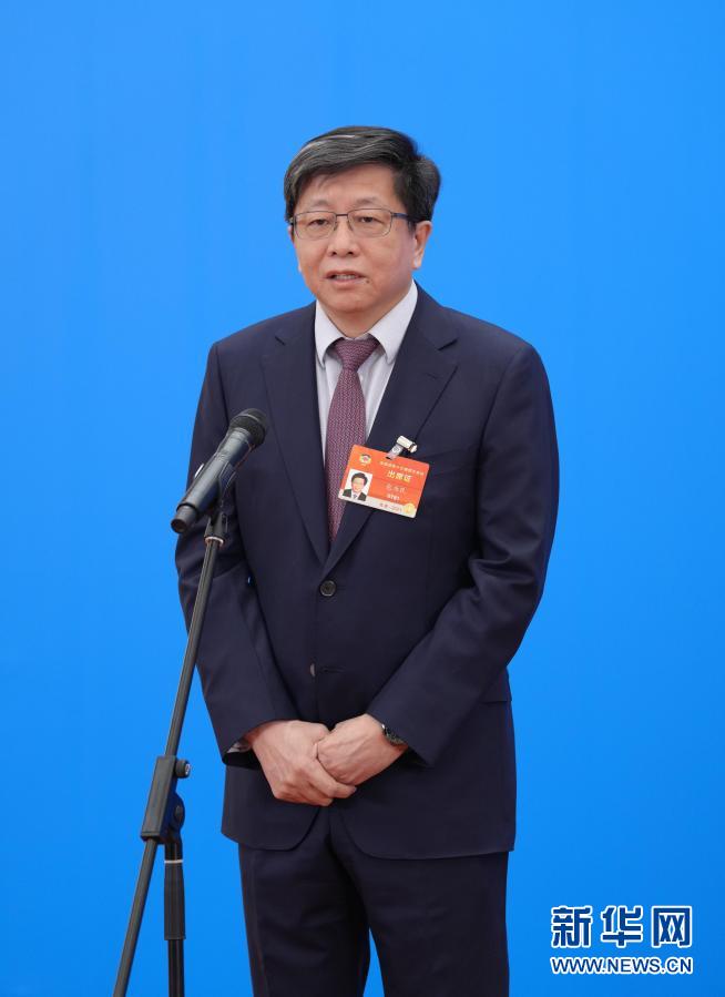 3月4日,全國政協(xié)十三屆四次會議第一場“委員通道”采訪活動在北京人民大會堂新聞發(fā)布廳舉行。這是全國政協(xié)委員朱征夫通過網(wǎng)絡(luò)視頻方式接受媒體采訪。新華社記者 李賀 攝